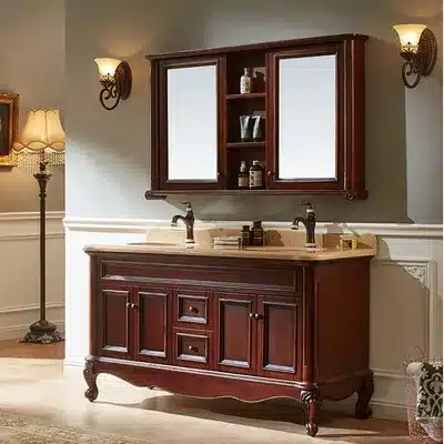This style features classic designs with detailed craftsmanship, ornate handles, and warm wood tones. It brings timeless sophistication to larger bathrooms.